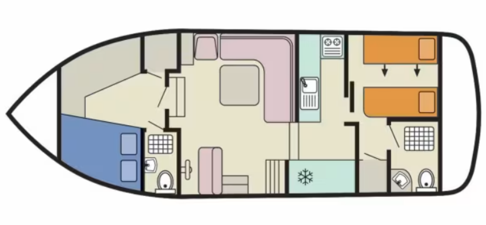 2 cabines avec salle de bain privative, idéal pour 2 couples